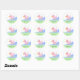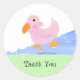 Um pata rosa giro com um bico laranja grande e uma expressão fofa. Uma borda verde macia com pontos brancos.