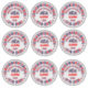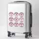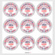 Nove adesivos em uma folha adesiva de 14 x 14 polegadas. Cores patrióticas vermelho-branco e azul, as letras de texto alternam entre vermelho e azul, ambos esboçados com branco, depois os centros vermelhos esboçam em azul, o azul esboçado em vermelho. Celebrar o 250º aniversário da assinatura da Declaração de Independência da América. O design está disponível em outros tamanhos de adesivos, camisas, outros produtos e pode ser transferido para um número ainda maior de produtos.