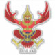 Vinheta Patriótica Emblem Nacional da Tailândia com a representação do Emblema Nacional da Tailândia. Abaixo do emblema nacional está a inscrição "Tailândia" feita em lindas fontes "Aceserif" e a cor preta. A inscrição está na parte inferior infundida com o emblema nacional, mas pode ser livremente movida ou até mesmo apagada usando o recurso "Personalizar!". O adesivo nacional emblem da Tailândia é um presente fantástico e interessante para qualquer ocasião. © 2021 PaísesDoMundo