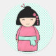 Boneca Kokeshi japonesa desenhada digitalmente. Quimono rosa e Teal e cinza.