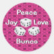 Aqui está um design gráfico inspirador para você compartilhar com outros jogadores de bunco. Esta mensagem positiva diz: Paz, Joy, Amor e Bunco. Comprar um como presente ou prêmio. Personalize com seu próprio nome, nome de grupo ou data.