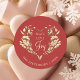 Vinheta festiva de Natal com um fundo vermelho com uma coroa de ouro floral ao redor das palavras Paz, Amor, Alegria. Personalizados com seu nome de família e ano, esses adesivos são perfeitos para selar envelopes, decorar pacotes de presentes ou adicionar um toque festivo aos favoritos para festas. Um acessório correspondente a na moda para coordenar cartões de natal e envelopes.