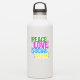 Paz Ama Trabalho Social. Bons adesivos sociais com uma família de mãos atadas ao lado de um cartaz de paz e coração. Serviços sociais presentes.
