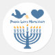 Festival de Luzes Hanukkah que diz PEACE LOVE HANUKKAH com pomba e galho de oliveira, coração e menorah acesa. PinkInkArt original!