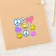 Paz, Amor, Ria, Sorria, Viva, Padrão. Com corações cor-de-rosa e roxo, rostos amarelos sorridentes e felizes, e símbolo azul de paz. Ajudando-o a ficar alegre, motivado, encorajador, inspiração, a ter um dia de excelente. Surge com positividade. Excelente para crianças, meninas, melhores amigos, esposa, namorada, irmãs, tia, avós, mães, filhos e muito mais.