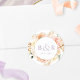 Um monograma elegante selante de envelope de casamento ou adesivo de favor com detalhes florais de cor d'água lindíssimos em uma bela mistura de pêssego, laranja, rosa-pincel, creme e matizes de champanhe. Centrar em branco com iniciais e segunda linha de texto em roxo de lavanda. Duas opções de tamanho e várias opções de forma a serem escolhidas. A linha de texto inferior pode ser usada para a data do evento, apagar ou, no caso de favoritos de evento, adicionar uma mensagem de obrigado curto (ou seja, "obrigado por vir". Parte da nossa coleção "Peach Floral Delight and Lavanda Purple" com uma variedade de produtos de coordenação disponíveis. Visite a coleção inteira em: https://www.zazzle.com/collections/peach_delight_floral_and_lavender_purple-119272840408758311