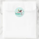 This cheerful, circular Peanuts sticker is set against a soft, light blue-green or aqua background. The central image features Snoopy, the famous beagle, wearing a long, festive, striped winter cap in red and teal/green. Perched on the tassel of his hat is his friend Woodstock, who is waving. Bold text next to the pair reads "WARM WISHES," with "WARM" in red and "WISHES" in teal, and a small red bow accent. This officially licensed sticker is a delightful piece of seasonal merchandise, perfect for sending warm greetings, decorating holiday gifts, sealing envelopes, or adding a cozy, classic Christmas touch to any surface.