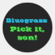 Este adesivo diz, "Bluegrass. Escolha, filho!" Esta é uma frase que ouvimos muito em festivais de bluegrass e sessões de compotas, pelo menos aqui na Carolina do Norte.