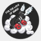 Apresentando uma design digital de um solteiro sagrado quadskate, asas de anjo esportivo e sentado em uma nuvem com o slogan "Pelo amor do 'quad'!"