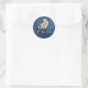 Esta imagem vintage tem uma maravilhosa fada loira vestida de ouro com meias pretas e asas azuis bonito. Ela está sentada em uma lua azul crescente. O texto diz Blue Moon e o fundo é um céu azul profundo. Veja minha loja Art by MAR para combinar produtos com este design.