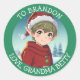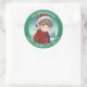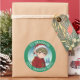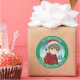 Adorável e fofo elfo sentado do lado de fora em um dia de inverno. Adicione um toque fofo aos seus presentes com esses adesivos de presente de Natal personalizados para e de.