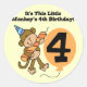 Pequeno Macaco 4º Aniversário, camisetas, canecas, cartões, adesivos, bolsas, e mais com um macaco bonitinho em um carregando de paraíso, uma grande vela e texto que diz "É o 4º Aniversário deste Pequeno Macaco!".