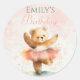 O adesivo redondo clássico, da delicada coleção, apresenta uma bailarina de urso doce numa saia-coral cor-de-rosa fluffy, flutuando graciosamente sobre nuvens macios e sem peso contra fundo aquoso de uma rosa claro. Esta gentil e adorável coleção de aquarelas é um ajustado perfeito para a celebração de aniversário da sua filha. Use esta coleção e personalize-a para se adequar ao seu tema de festa. Os adesivos também vêm com fontes na moda, permitindo que você personalize o texto conforme desejado.