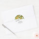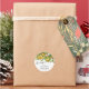Pêras penduradas em meio a flores brancas e folhas verdes.