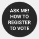Pergunte-me como se registrar para votar simples adesivos e rótulos brancos e pretos. Texto branco personalizado sobre fundo de cor editável a preto para que você possa personalizá-lo e torná-lo exclusivo. estilo elegante simples minimalista.