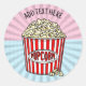 Adicione texto para um adesivo com tema de noite de filme com pipoca de estilo retrô desenhada pela mão.