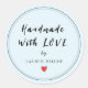 Personalizado à mão com amor em um roteiro moderno sobre fundo azul pálido. Adiciona um bonito toque final para todos os presentes feitos à mão.