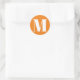 Personalizar o número inicial do monograma do adesivo redondo clássico branco laranja