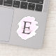 This custom vinyl sticker features a dusty rose paint stroke design with a personalized name and initial. These vinyl monogram stickers are designed for use on laptops, water bottles, tablets, and notebooks.