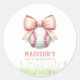 A simple, modern, and romantic sticker design featuring a delicate baseball with a soft pink bow and subtle grass accents. Personalized with the birthday child’s name, this sticker is perfect for decorating party favors, treat bags, boxes, and gifts at a girls’ baseball-themed birthday celebration. A sweet detail that adds a stylish finishing touch to any party setup. This design is part of the Pink Baseball Birthday Collection featuring matching party decor and accessories.