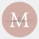 Elegant, modern, and personalized—this custom round sticker features your initial in bold white paired with your name in graceful hand-lettered script, all on a soft dusty rose background. Perfect for sealing letters, branding packaging, or adding a charming touch to gift tags, party favors, or school supplies.