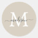 Elegant, modern, and personalized—this custom round sticker features your initial in bold white paired with your name in graceful hand-lettered script, all on a warm beige background. Perfect for sealing letters, branding packaging, or adding a charming touch to gift tags, party favors, or school supplies.
