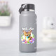 Bonito estilo aquarela ai art com um gato de mesa giro cercado por flores rosa e roxas. Citação atrás diz: "Petals n Purr".