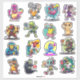 Bring big personality to your gear with this extra‑large sheet of pickleball stickers, featuring sixteen vibrant, cartoon‑style characters—each swinging a paddle with attitude. From a feisty rooster and a tutu‑twirling hippo to a stealthy ninja, alien, robot, dinosaur, and more, every sticker bursts with color, motion, and playful charm.