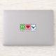 Pilatos de Paz e Amor. Um bonitinho adesivo de instrutor de pilates com um sinal de paz, coração e mulher esticando-se sobre uma bola de exercícios.