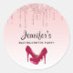 Um adesivo de despedida de solteira moderno e elegante. O fundo tem uma imagem de pingos de brilho rosa cintilante, ao longo da parte superior. O resto do fundo é um gradiente de cor rosa pastel delicado. Um par de sapatos de salto alto rosa abaixo do texto personalizado.