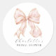 Elegant, tying the knot bridal shower white bow. Classic Round Sticker | Chic Bride-to-Be Celebration, Minimalist Modern Wedding Shower Theme, Feminine Party Invite, Printable or Digital Template