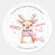 The most charming pink nosed reindeer wishes you "Merry Christmas" on this cute retro watercolor sticker. What?! Were you expecting a reindeer with a red nose? Nope, we are sure you want pink! You will be giving a smile to the friends and family members who receive letters and packages from you with this sticker. All of the text is editable. Be sure to change the example family name and year to what you want there. While we show this design on a round sticker, we think it also looks good on a square sticker, if you prefer that shape.