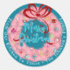 Este adesivo retrógrado redondo de Natal tem uma coroa de alumínio rosa pintada manualmente com ornamentos retrorreflectores clássicos, estereótipos, símbolos atômicos e o cartões de natal Feliz Natal. Personalize este adesivo com a sua própria saudação, mensagem e nome. Excelentes a serem usados para troca de cookies ou para fechar cartões de saudação de Natal. Esta é uma design moderna chamada de meio século é perfeita para celebrar e decorar a época de férias.