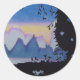 A ilustração de arte original neste adesivo de arte excelente é produzida a partir de uma imagem de aquarela que eu pintei alguns anos atrás. Eu gosto muito de trabalhar com esta ideia ilustrativa que usei para esta pintura da paisagem do pôr do sol da montanha, acho que as cores parecem excelentes enquadradas pelas silhuetas pretas sólidas em primeiro plano, a imagem tem um pequeno efeito de conto de fadas. Com o céu do pôr do sol esta cor da arte da paisagem do lápis parece muito original neste adesivo. Eu acho que esta pequena imagem de fantasia funciona bem neste adesivo e vai se destacar em qualquer papel de carta, cartão postal ou envelope.