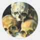 Pirâmide de Cezanne com adesivos de Skulls. Pintura a óleo na canvas desde 1901. Durante os últimos anos de sua vida, Paul Cezanne dedicou diversas pinturas de vida morta ao tema da morte e da vaidade humana. A pirâmide dos crânios é, sem dúvida, sua pintura mais poderosa do crânio. O trabalho apresenta três crânios humanos empilhados numa mesa olhando para o espectador sem mandíbulas inferiores. Um presente de excelente para fãs de Cezanne, impressionismo postado, pinturas de crânio e arte francesa.