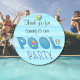 Obrigado por ter vindo ao nosso Partido da Piscina completar uma bola de praia colorida de arco-íris, flutuador de piscina e par de chinelos. Você pode personalizar o texto "Obrigado por vir até nossa".