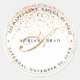 PixDezines Letra Maiúscula em Script de A-Z em dourado falso e confetes coloridos em folha falsa sobre fundo colorido de DIY.