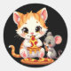Adesivo pizza engraçada comendo pizza de gato comendo rato