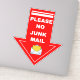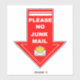Este "Sinal de Por Favor Sem Correspondência Indesejada - Adesivo de Seta Vermelha" fornece uma mensagem clara e direta ao pessoal de entrega, solicitando educadamente que se abstenham de entregar correspondência indesejada. O adesivo apresenta as palavras "Por Favor Sem Correspondência Indesejada" em texto em negrito, juntamente com uma seta vermelha apontando para uma área designada onde panfletos ou brochuras podem ser deixados.