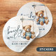 Adicione um toque doce e pessoal aos seus favores, envelopes ou decoração do chá de fraldas com este adesivo redondo clássico "We Can Barly Wait" com um adorável ursinho de pelúcia aquosa em macacões azuis, que balançam debaixo de uma terra verde. Perfeito para um bebê ou chá de fraldas neutro em relação ao gênero, este design adesivo é ideal para selar envelopes de convite, decorar favoritos para festas ou adicionar charme a obrigados. Personalize com o nome do bebê e a data do chá usando as ferramentas fáceis de edição do Zazzle.