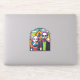 Apresentando nosso adesivo de arte pop, único e atraente, com a pintura icônica americana gótica com uma reviravolta divertida. A ilustração é colocada sobre um fundo de raios solares quentes, nuvens lisas e uma charmosa fazenda amarela. Este adesivo é a maneira perfeita de adicionar personalidade e estilo a qualquer superfície. As cores e a design evocam um humor lúdico e alegre, fazer perfeito para aqueles que apreciam o estilo da arte pop. Adicione algum talento ao seu laptop, garrafa de água ou notebook com este adesivo de um tipo.