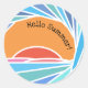 pôr do sol estilizado em design de onda de barril com texto personalizável.