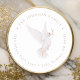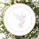 Um adesivo redondo elegante, com uma pomba branca de cor aquosa, pintada à mão, que segura um ramo de oliveira. Personalize e faça dele seu!