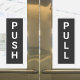 Vinhetas pretas e brancas e pretas para qualquer edifício, retalho, loja, restaurante, apartamento, etc. Decal de vinilo para qualquer porta de vidro ou metal. Exemplo de Mockup não dimensionado.