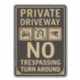 Proteja sua propriedade privada e impeça visitantes indesejados com este sinal claro e autoritativo de "Private Driveway No Trespass Turn Around". Apresentando um design preto e bege ousado com ícones indicando que não há veículos não autorizados, sem voltas em U e vigilância 24 horas, este sinal comunica efetivamente suas regras de propriedade. Os elegantes florescimentos adicionam um toque de sofisticação enquanto mantêm um forte aviso. Ideal para estradas residenciais, estradas privadas ou qualquer área onde você precisa definir claramente limites e impor segurança.