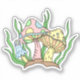 Cogumelos portobello em desenhos animados a mão, cor-de-rosa, amarela, azul e verde.