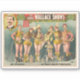 Poster vintage publicitário The Excelente Wallace Mostra circo, mostrando uma família em vestidos de circo com bicicletas, por volta de 1898. A famosa Família Stirk - os maiores ciclistas do mundo.