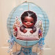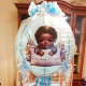 Nada como as mãos de um bebê precioso. Este bonitinho tem um bebê afro-americano com suas mãos preciosos em um travesseiro. Ele tem este rosto redondo com olhos castanhos brilhantes e um sorriso adorável.