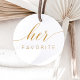 Adesivo de Favor Dourado Falso Favorito Dela com caligrafia moderna para Saco de Boas-Vindas de Casamento. O design apresenta um layout de texto de script de estilo moderno. Para fazer alterações avançadas, selecione a opção "Clique para personalizar ainda mais" em Personalizar este modelo.