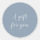 Bonito adesivos para presentes de pequenas empresas para seus clientes com o texto de um presente para você na caligrafia de guião elegante e azul pastel em um fundo azul empoeirado com uma risca na moda preto e branco. Desenvolvido exclusivamente para você pelo Happy Dolphin Studio. Se precisar de ajuda ou produtos correspondentes, entre em contato conosco em happydolphinstudio@outlook.com.